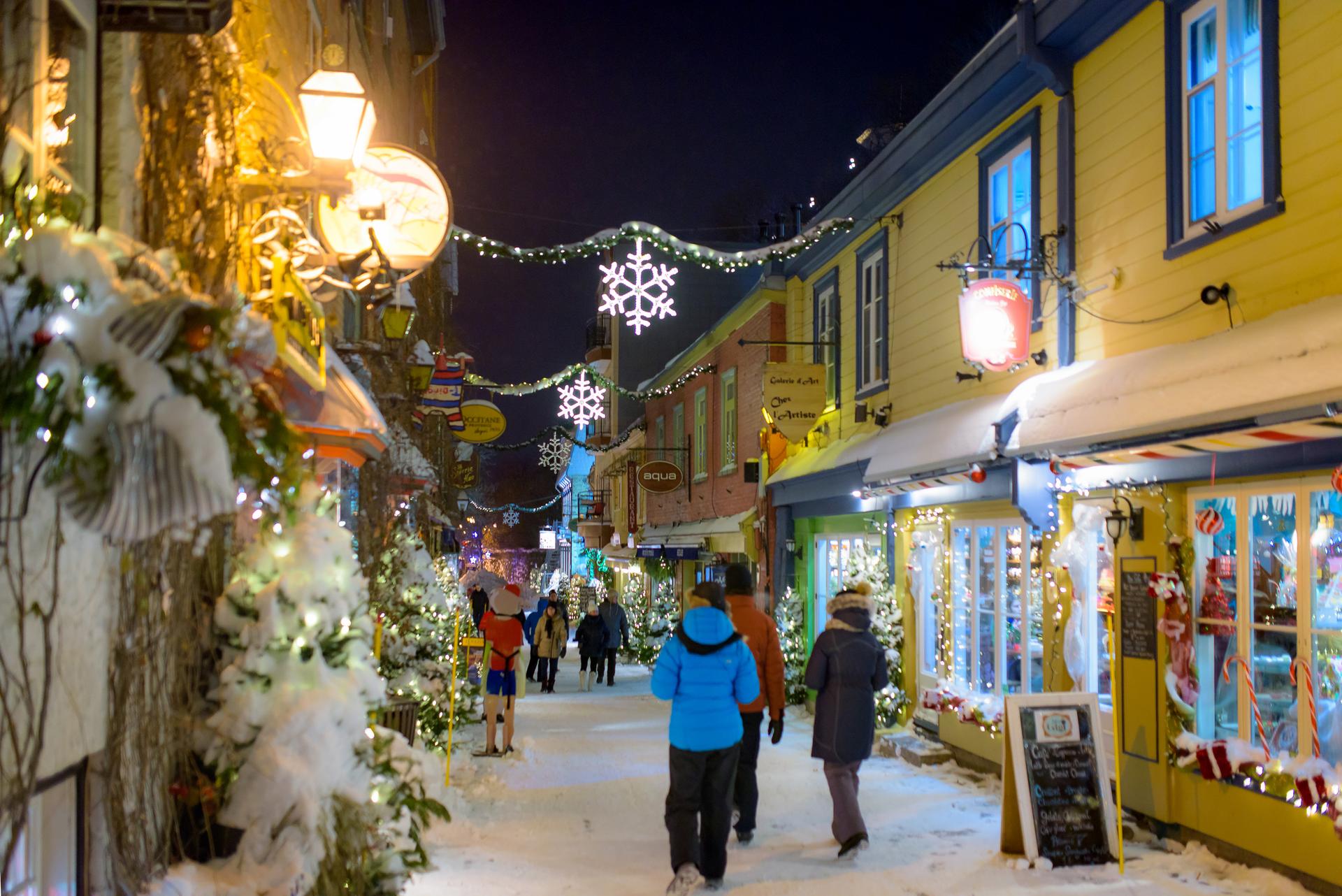 您也许无法在欧洲以外找到比魁北克城(Quebec City)的魁北克老城(Old Quebec)更具旧世界风情的城市了。这个拥有400年历史的城市仿佛一座圣诞节颂歌般的度假村,鹅卵石铺就的街道上飞扬着雪花,在城墙的环绕下,各色商铺出售着手绘木制玩具、精美的装饰品、本地制作的奶酪、新鲜的香肠和热红酒。镇上也到处装点着闪烁的彩灯和圣诞装饰。当然,烟花表演、户外音乐会和魔幻般的舞会都是必不可少的。魁北克城毫不意外地被CNN评为全球十大庆祝圣诞节的目的地之一。如果您决定在圣诞节后拜访,那就不要错过热闹的魁北克冬季嘉年华(Carnaval de Québec),这可是全世界最盛大的冬季狂欢节。