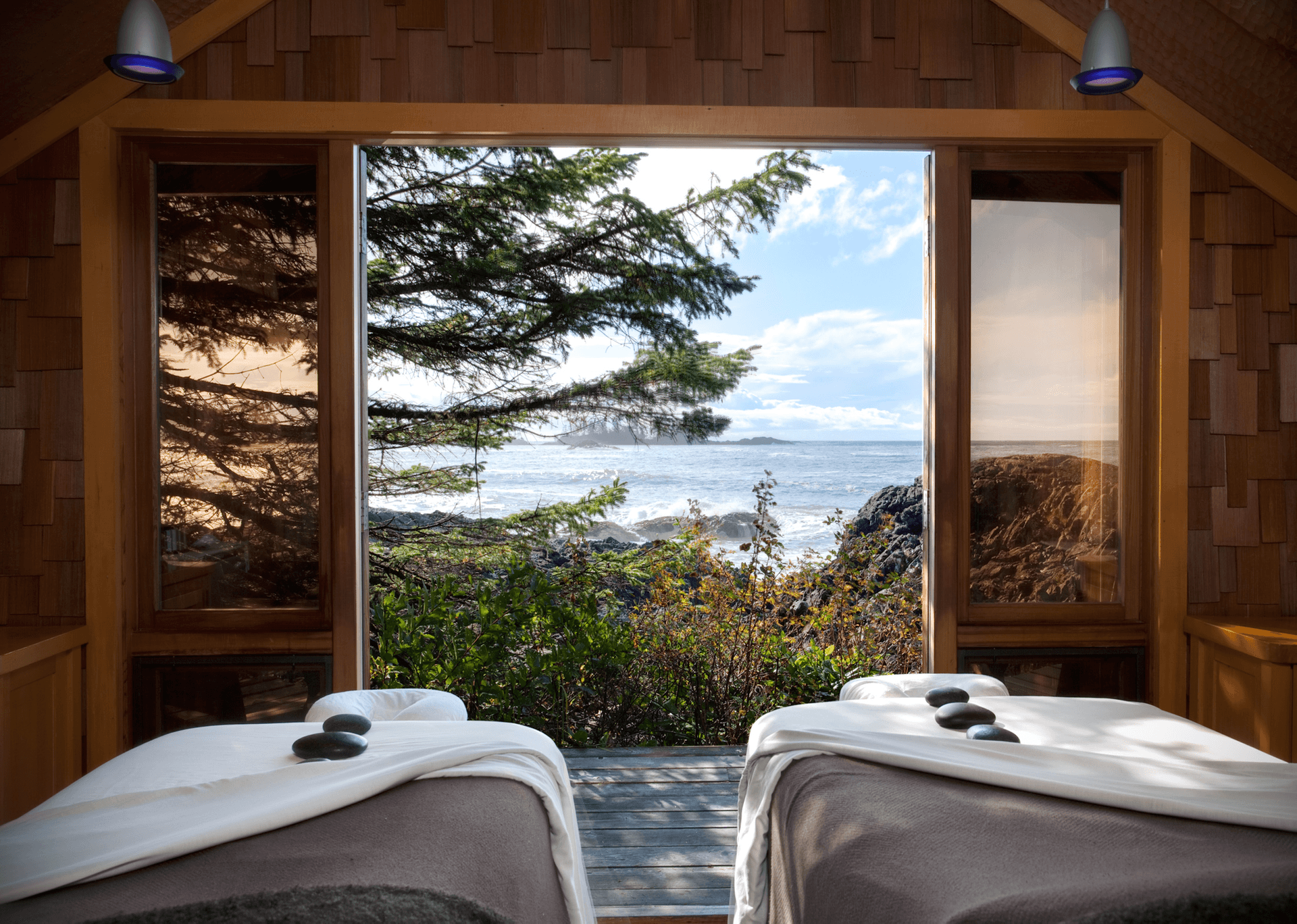 BC省西海岸坐落着一个名为托菲诺(Tofino)的冲浪小镇。冒险者们蜂拥而至乘风破浪,或在周围的雨林中徒步旅行,但如果您想寻找一段放松的时光,维肯尼尼许旅馆(Wickaninnish Inn)不容错过。酒店的古松水疗(Ancient Cedars Spa)依偎在森林边缘的岩石中,拥有观赏太平洋壮丽景色的绝佳视角。您可以在欣赏这一美景的同时,享受按摩、身体清洁或体验当地原住民独特的唤醒疗法。除此之外,这里也是体验瑜伽课程的最佳去处。