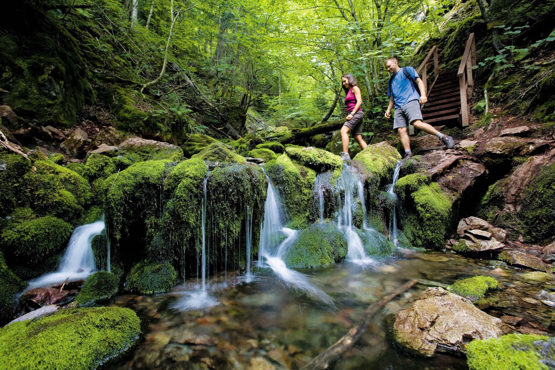 如果您向往的是令人叹为观止的壮美景致,那布雷顿角高地国家公园(Cape Breton Highlands National Park)一定会在您的愿望清单中名列前茅。公园从布雷顿角岛东部延伸到西部,横跨著名的卡伯特公路(Cabot Trail),您将领略到鬼斧神工的峡谷、一望无际的森林、高原悬崖、湖泊与河流点缀其间的美景。而天际线步道(Skyline Trail)无疑是这座皇冠上的珍宝,这条相对简单的五英里往返步道将带您到达一处悬崖,在那里您可以观赏圣劳伦斯湾(Gulf of the St. Lawrence)的落日余晖,并有机会看到浮出水面喷气的鲸鱼。