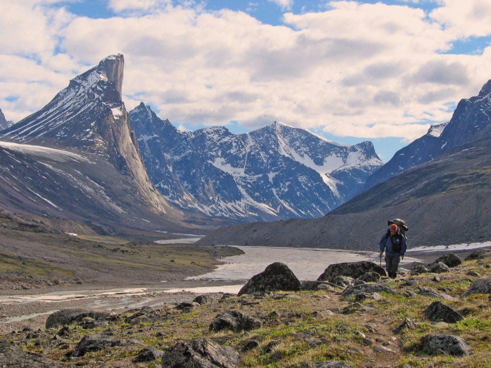 冰川、崎岖的山脉和河流塑造了奥育图奇国家公园(Auyuittuq National Park)的地形。充满挑战性的地形吸引了众多徒步旅行者和滑雪爱好者,其中大多数人会选择95公里长的阿克沙育科通道(Akshayuk Pass),这是一条横穿整个公园的因纽特人传统旅行通道(被当地人称为庞通道,Pang Pass)。虽然我们无法走完全部的95公里行程,但还是可以选择前往北极圈的一日游行程,或借由狗拉雪橇或雪地摩托来探索这里的地形。如果要说公园中哪个景点最不容错过,那一定是索尔山(Mount Thor),恰如其名的山峰拥有全世界最高的垂直落差:1250米,非常值得一看。